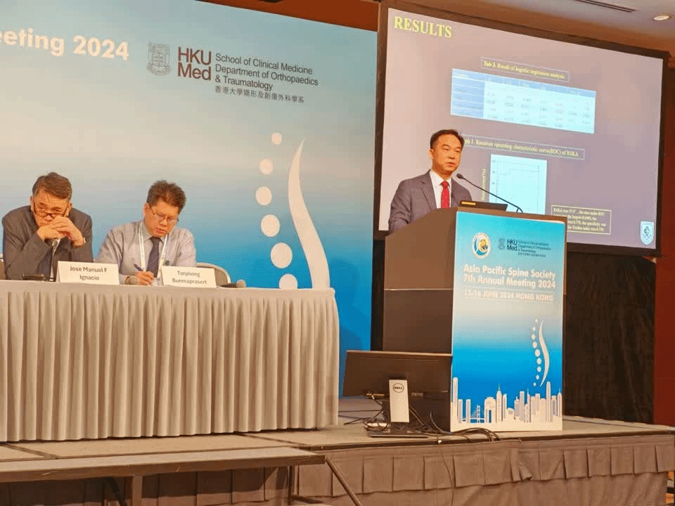 本網(wǎng)訊(附屬康復(fù)醫(yī)院)6月13日至16日,由亞太脊柱外科學(xué)會(Asia Pacific Spine Society, APSS)主辦的2024年年會在香港會議展覽中心成功召開。南昌大學(xué)附屬康復(fù)醫(yī)院副院長曹凱當(dāng)選為亞太脊柱外科學(xué)會理事會理事(APSS Board Member),并作大會發(fā)言。曹凱教授當(dāng)選APSS理事會理事,標(biāo)志著醫(yī)院脊柱外科診療技術(shù)與水平邁向國際。