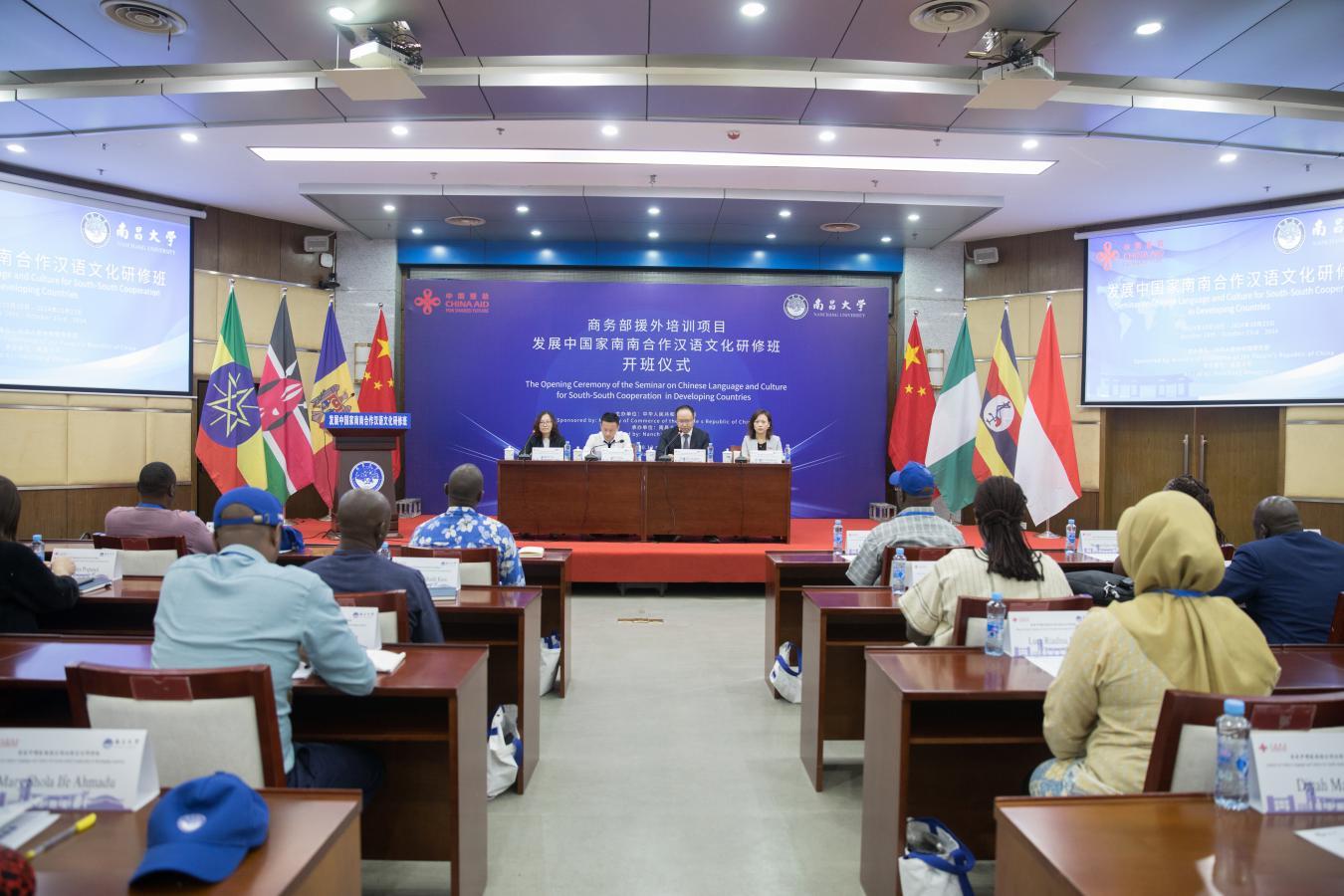 本網訊(國際教育學院)近日,南昌大學受商務部委托承辦的2024年援外培訓項目“發展中國家南南合作漢語文化研修班”在辦公樓二樓多功能廳順利開班。南昌大學副校長吳丹、江西省商務廳相關負責人出席開班儀式并致辭。來自尼日利亞拉各斯州移民局的KABIR DANJA BALA 作為學員代表在開班儀式上發言。