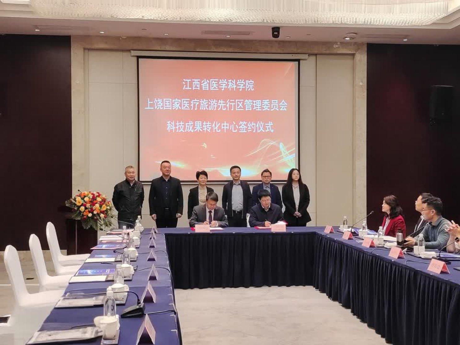會議期間,江西省醫學科學院與上饒國際醫療旅游先行區管理委員會舉行了江西省醫學科學院科技成果轉化中心合作簽約儀式,來自全國醫學科研院所領導和代表共同見證這一重要時刻。