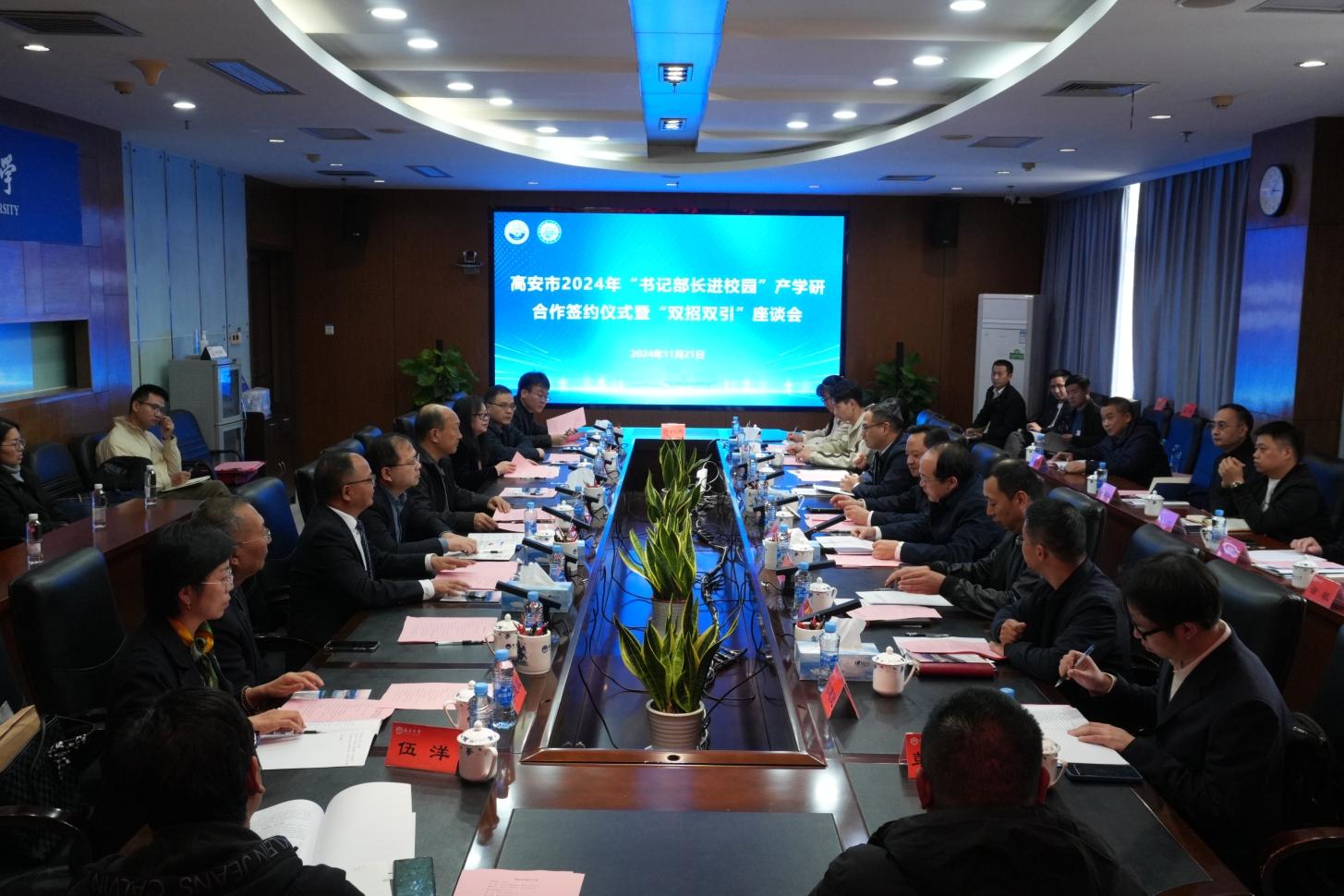 本網訊(綜合高品高安公眾號)11月21日,宜春市委常委、高安市委書記鄭紹率隊來校開展“書記部長進校園”產學研合作簽約暨“雙招雙引”活動,我校黨委書記羅嗣海,副校長葛剛,高安市委常委、市委組織部部長賴雄偉出席活動。