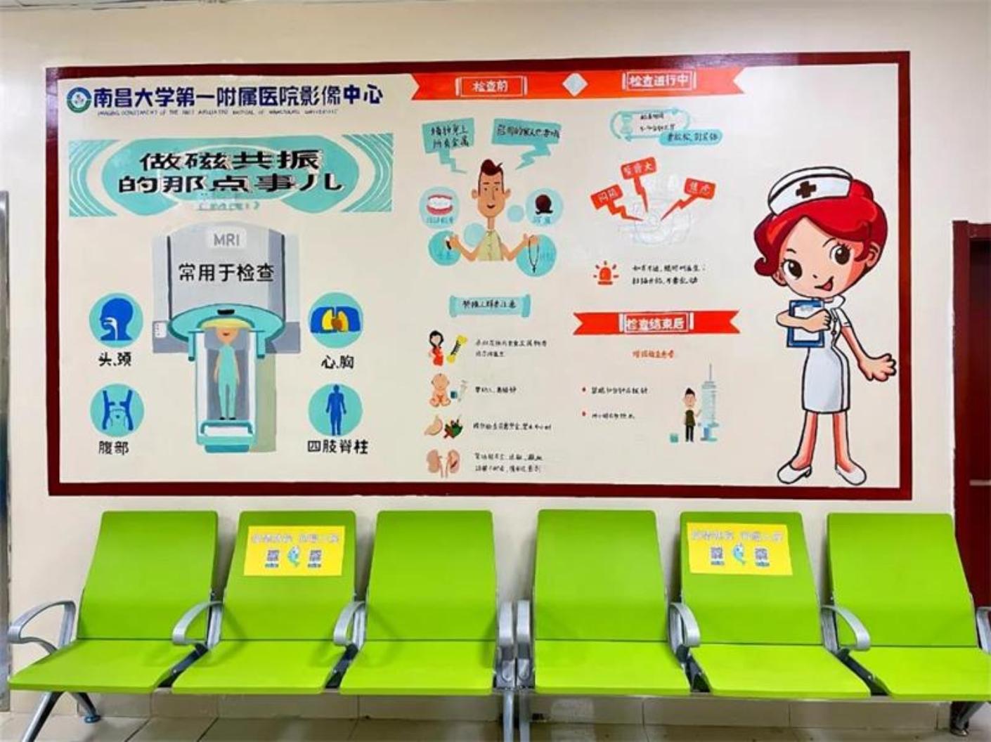 本網訊(第一附屬醫院)清晰易懂的卡通導診和標識、舒適的座椅、精心繪制的墻面彩繪、溫馨安靜的書吧……近日,在南昌大學第一附屬醫院東湖院區的磁共振檢查大廳里,有一片“特殊”的候診區——“印象驛站”投入使用。全新的候診區內環境寬敞整潔、溫馨舒適,各具特色的文化墻讓前來就診的患者感受暖暖的“人情味”。