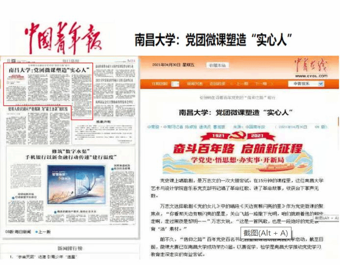 活動通過音樂黨史、從專業發展看黨史等多形式、多角度設計和打造微課,讓大賽活起來;通過支部書記帶頭講微課、院長博導帶頭參賽,讓大賽實起來;通過競賽式優選、生動化講述、數字化傳播,讓大賽火起來;學校微課活動被中國青年報、江西日報等主流媒體關注報道,讓活動品牌立起來。