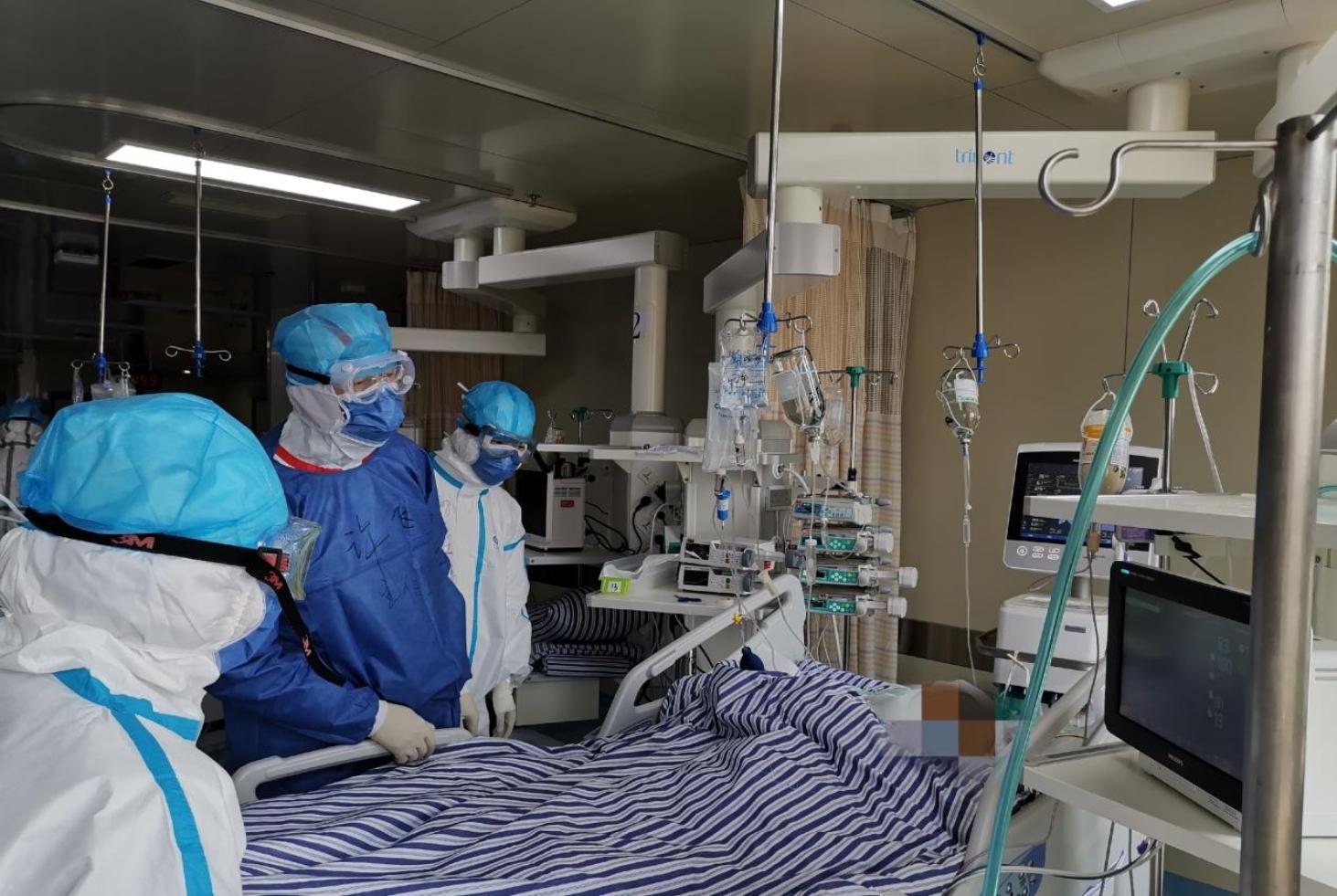 許飛(中間)在隔離病房中工作