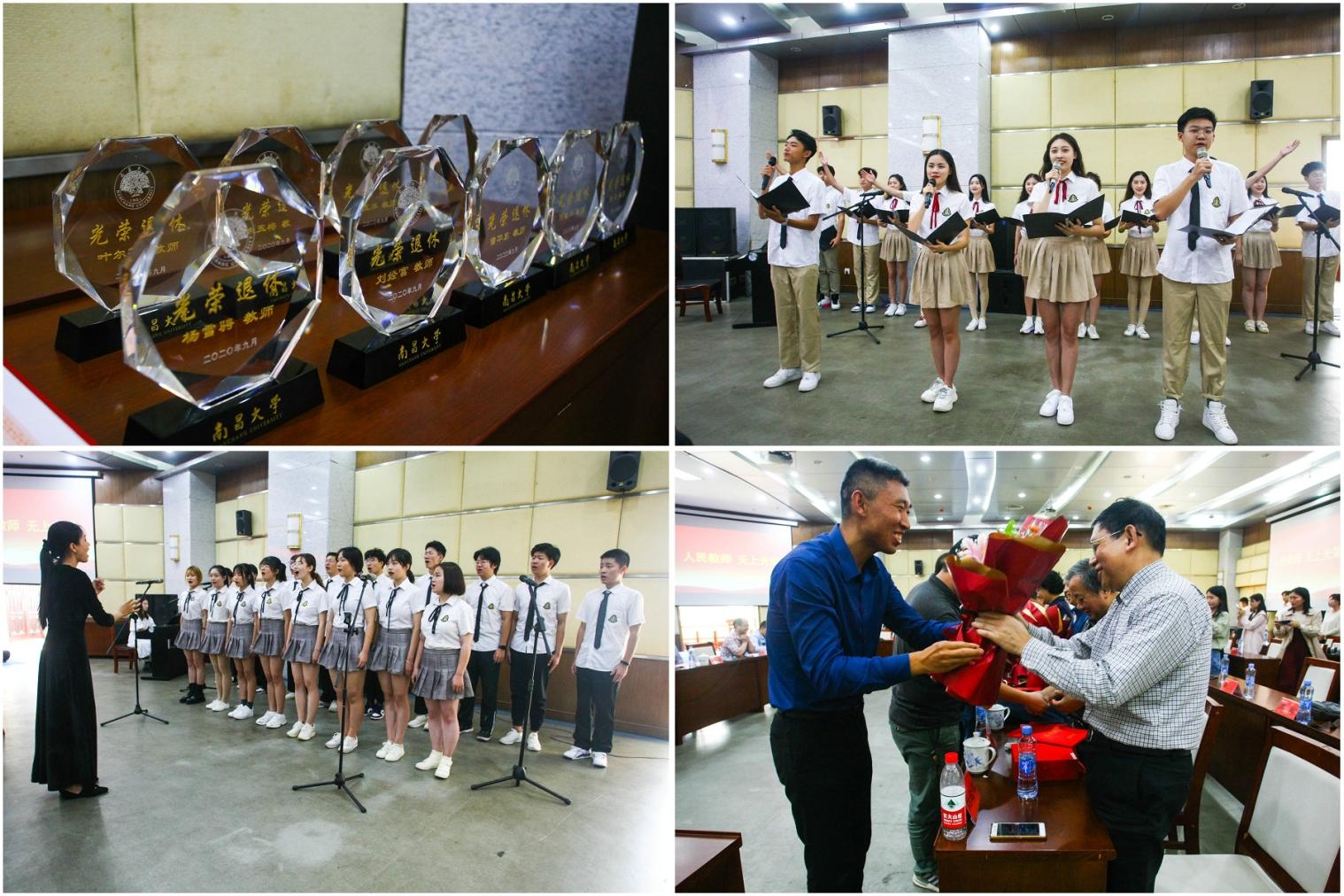 “假如我是一朵雪花,翩翩的在半空里瀟灑,我一定認(rèn)清我的方向,飛揚、飛揚、飛揚,這地面上有我的方向。”在《雪花的快樂》的清唱聲之后,青年教師代表為退休教師代表獻花,退休教師代表為青年教師代表佩戴校徽,座談會在掌聲中溫暖落幕。