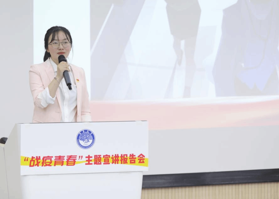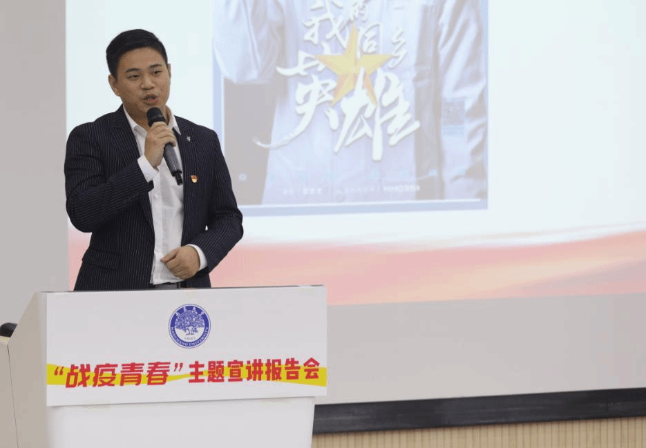 “前四位講者把本土作戰與援鄂‘戰疫’的感人故事說透,我將重點講述中華民族‘全球戰疫命運與共’的使命擔當。”附屬人民醫院李雅婷圍繞《構筑新時代全球戰疫的新長城》主題,帶領現場師生從三赴抗疫一線的附屬人民醫院院感處處長李福太的事跡中收獲感動,汲取力量,“千萬個李福太這樣的中國醫生扛起了全球‘戰疫’的脊梁,繪出了人類命運共同體的偉大同心圓。”