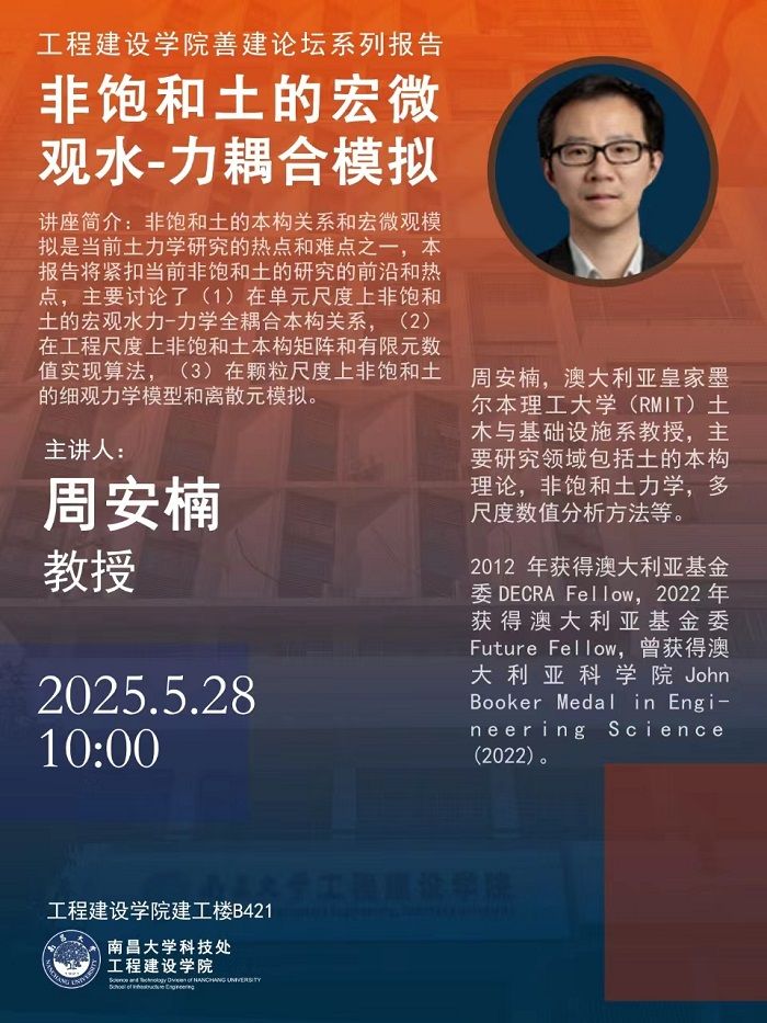 工程建設學院善建論壇系列報告:非飽和土的宏微觀水-力耦合模擬